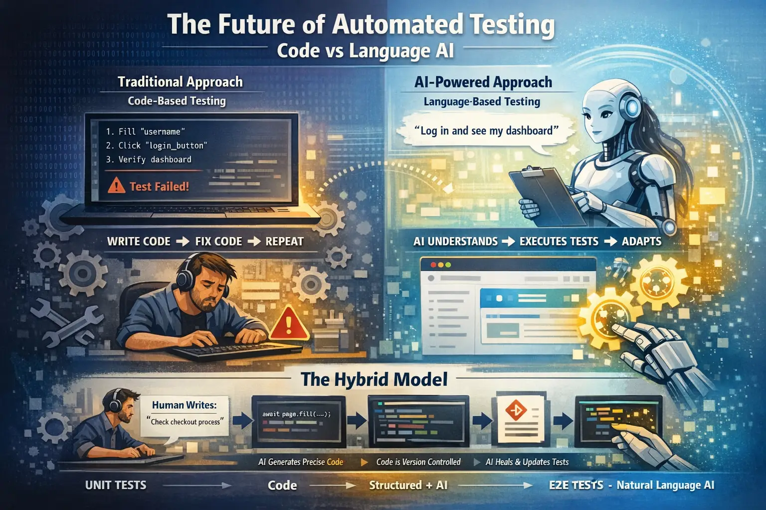 E2E testing is shifting to natural-language AI agents while integration tests still need deterministic code. Where does each layer of testing belong — and do we actually agree on what 'right' looks like?